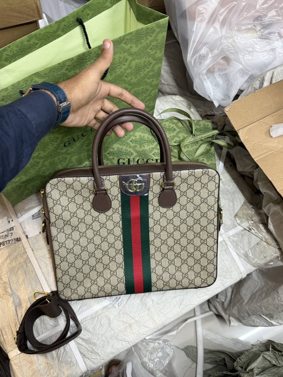 • Gucci_gg_supreme_premium_laptop_bag_with_ribbonbox_carrybag_longbelt_etc